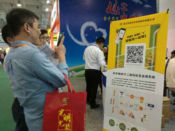 其中根據(jù)9月18日農(nóng)業(yè)部辦公廳印發(fā)的《農(nóng)作物種子標(biāo)簽二維碼編碼規(guī)則》要求,推出的農(nóng)作物種子二維碼標(biāo)簽追溯系統(tǒng),吸引了諸多專業(yè)客戶駐足。系統(tǒng)分為:包裝印刷環(huán)節(jié)、生產(chǎn)環(huán)節(jié)、流通環(huán)節(jié)、追溯環(huán)節(jié)等四個(gè)環(huán)節(jié)。操作靈活方便,可自動(dòng)生產(chǎn)唯一性二維碼,品種和批次獨(dú)立管理,又相互關(guān)聯(lián)。消費(fèi)者,執(zhí)法者,經(jīng)營者可通過手機(jī)二維碼獲得種子的品種信息、生產(chǎn)經(jīng)營者信息、品識(shí)別碼、追溯網(wǎng)址等內(nèi)容。許多客戶紛紛掃碼體驗(yàn),對(duì)系統(tǒng)的及時(shí)性和便捷性贊不絕口,部分客戶同公司營銷總監(jiān)陳麗婷就系統(tǒng)的購買和使用問題進(jìn)行交流,對(duì)托普云農(nóng)在種業(yè)領(lǐng)域做出的成果給予肯定,希望托普云農(nóng)可以推出更多符合市場(chǎng)需求的產(chǎn)品。