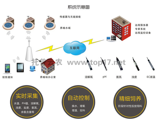 我國雖然是水產養殖大國,但是過去大多是依靠廣袤的海岸線和豐富的淡水資源,養殖過程中所應用的科技化含量比較低,養殖方式單一,大多屬于粗放式的,依靠養殖人員的經驗進行養殖,基本上屬于靠天吃飯。這樣不僅水產養殖品質很難保證,而且養殖的風險也很高,一旦出現問題,往往是損失慘重,因此自農業物聯網興起以來,浙江托普云農科技股份有限公司(以下簡稱“托普云農”)就積極投入到了水產養殖監控系統的研發當中,希望利用它來掀起傳統水產養殖行業的革命,顛覆以往水產養殖的運作方式。