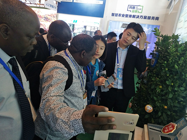 農業信息化是農業現代化的標志,為此海南集中優勢積極開展海南特色農產品的電商促銷、農產品質量安全追溯以及農業的信息化服務。在海南,瓜果種類資源豐富多樣。為提升現場參展人員的農產品質量安全溯源體驗,托普云農還將橘樹搬進展區。分布在展區的兩棵橘子樹,更是獲得國外友人的好奇與關注。通過手機掃描二維碼,便能查看到橘子的光照溫度、土壤溫濕度等生長環境信息。如此智能化的操作,讓國際友人贊嘆不已。