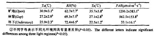 表 不同光環(huán)境下生態(tài)因子的日平均值