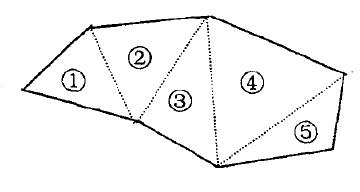 當(dāng)測(cè)區(qū)的形狀為矩形時(shí),只需測(cè)量長(zhǎng)與寬進(jìn)而求得面積。如果測(cè)區(qū)的形狀為非矩形的不規(guī)則多邊形,需將測(cè)區(qū)分割成許多三角形,如圖1測(cè)量每個(gè)三角形的邊長(zhǎng),算出每個(gè)三角形的面積,將所有三角形面積累加就得到測(cè)區(qū)土地的面積。已知三邊計(jì)算三角形面積的公式為:S= √ p (p-a)(p-b)(p-C)。(1)其中:a,b為三邊長(zhǎng),p為三角形的半周長(zhǎng)。