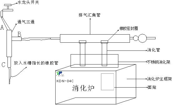 為提高蛋白質含量測定的檢測速度,其關鍵首先要加速樣品消化煮解時間,KDN-04C-4孔消化爐,由于采用井式陶瓷電加熱消煮方式,可單獨對單個孔或多個孔加熱,消化管連同管內所注入的20ml硫酸及試樣置入井式陶瓷爐內加熱消煮,取得較佳熱效應,消化管內溢出的SO2等有害氣體,通過消化爐上的排污管經(jīng)抽吸泵從水中排入下水道,有效地抑制有害氣體的外逸。