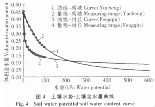 繪制禹城站、封丘站土壤水勢(shì)-土壤含水量曲線(圖4) 。