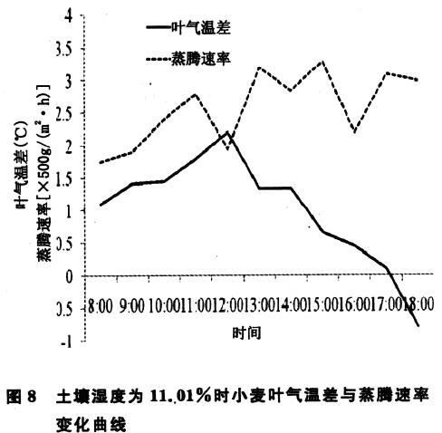 根據(jù)能量平衡原理,葉片與空氣溫差的變化取決于太陽凈輻射的強弱和作物蒸騰量的大小。當作物獲得充分的水分供應(yīng),葉片因蒸騰而冷卻,溫度下降并低于其在蒸騰抑制時所能達到的溫度;而當水分供應(yīng)減少時,作物蒸騰的潛熱減少,顯熱增加,葉片溫度相應(yīng)上升。