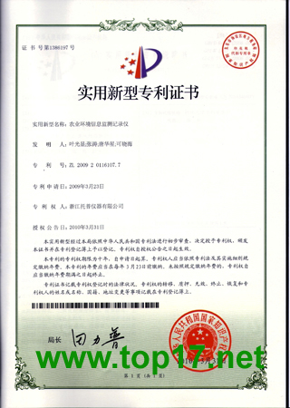 多年來,浙江托普儀器有限公司在產品研發上一直孜孜以求,投入很大的人力與財力,以繼續保持并發揚浙江托普的品牌。此次浙江托普農業環境記錄儀獲實用新型專利和軟件著作權就是一個很好的證明,我們會繼續努力,不辜負廣大朋友對我們的信賴與支持!