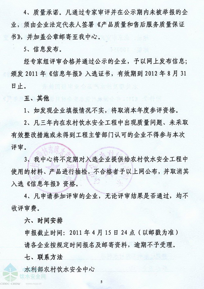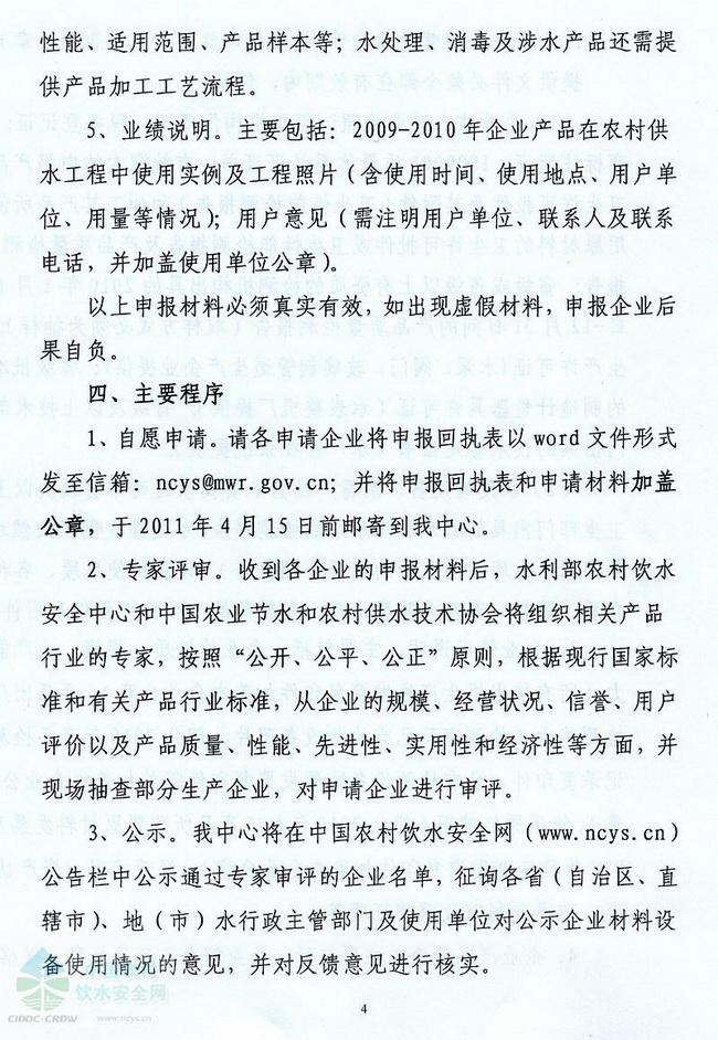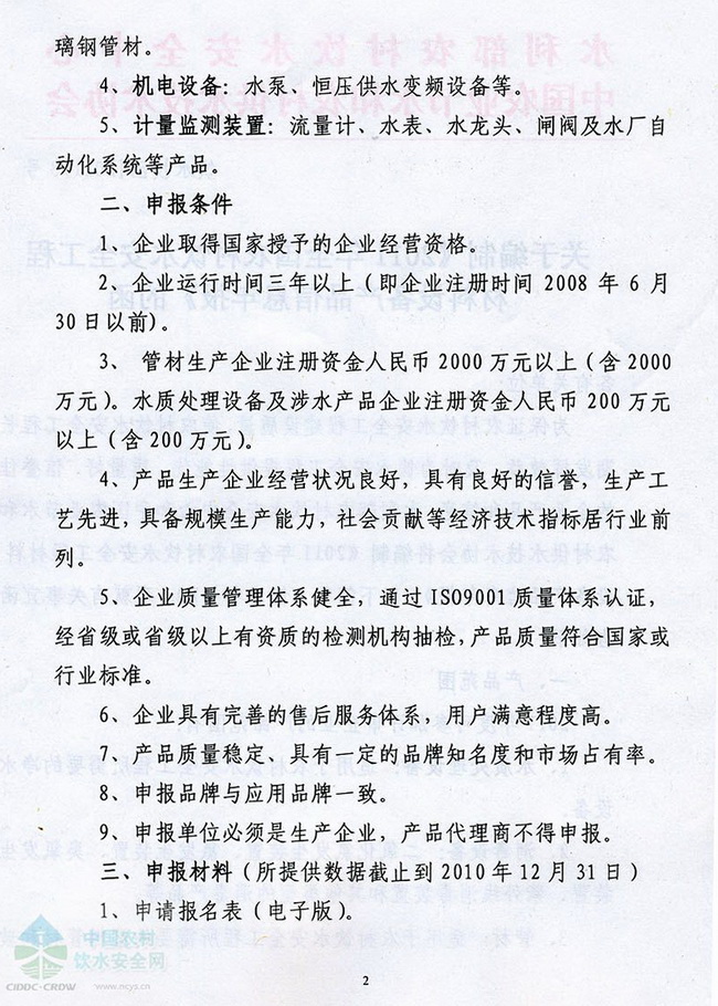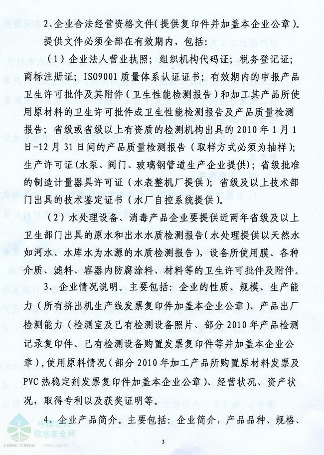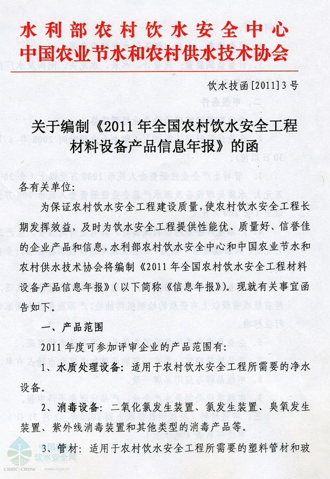 關(guān)于編制《2011年全國農(nóng)村飲水安全工程材料設(shè)備產(chǎn)品信息年報》的函