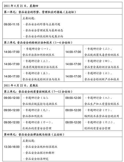 第四屆中國北京國際食品安全高峰論壇日程安排