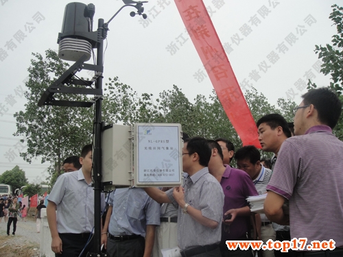 會議結束后,參會人員一同參觀了荊州區川店鎮千畝高產示范片。托普參會人員現場安裝了固定式無線農業氣象綜合監測站并進行實際操作。湖北省農業廳徐能海副廳長與各工作者駐足觀看、仔細聽取儀器講解,并詳細詢問產品細節,對此款儀器表現出了濃厚的興趣。