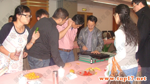 圖為:浙江托普公司朱旭華經(jīng)理向參會(huì)者演示產(chǎn)品