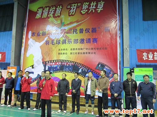 由全國農(nóng)技推廣中心羽毛球俱樂部主辦、浙江托普儀器有限公司全程贊助承辦的第二屆農(nóng)業(yè)部“托普儀器”杯羽毛球邀請賽2011年12月24日在北京貝特羽毛球館隆重舉行。全國農(nóng)技中心陳生斗主任為本次活動開幕式并致辭。