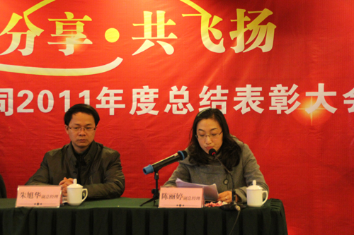公司總經(jīng)理陳渝陽先生在講話中指出,2011年是公司抓住機遇、開拓進取,上下團結(jié)一致,克服各種困難和市場競爭的壓力,實現(xiàn)公司市場、產(chǎn)品、規(guī)模、效益同等快速增長的一年,基本完成公司年初預(yù)定的各項經(jīng)濟目標任務(wù)。大部分歷史指標實現(xiàn)歷史最高水平。陳總對營銷方面、研發(fā)生產(chǎn)方面、人事行政等各方面工作進行總結(jié)評價,肯定了2011全年公司上下一心取得的成績,但也提出了工作中的不足,我們要繼續(xù)發(fā)揚開拓進取、用于拼搏的精神,來迎接2012年的挑戰(zhàn)。隨后行政副總就2011年度行政、人事工作進行了進一步的、較為詳細的總結(jié)。強調(diào)出明年的工作重點仍然是各項制度的制訂與完善,并要求公司上下堅決執(zhí)行。營銷副總則對公司全年的宣傳推廣及銷售情況進行了匯報。陳總表示,銷售業(yè)績達到預(yù)期目標,并提出了本年度公司整體營銷上存在的種種問題。12年的銷售任務(wù)仍然很重,但相信我們的營銷團隊可以圓滿的完成。生產(chǎn)副總則對公司的研發(fā)、技術(shù)、生產(chǎn)、質(zhì)檢等部門工作進行了總結(jié),主要針對各部門存在的一些問題提出了解決方案,并提出2012年的工作重點是不斷完善現(xiàn)有產(chǎn)品的品質(zhì)控制及加強各個部門的團隊建設(shè)。