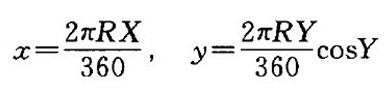 由于地球是一個(gè)橢球,為了精確計(jì)算距離或面積,一般采用投影的方式轉(zhuǎn)換成平面坐標(biāo)。在我國,對(duì)于大比例尺的地圖通常采用高斯一克呂格投影進(jìn)行轉(zhuǎn)換,然而投影法計(jì)算十分復(fù)雜,難以在單片機(jī)中實(shí)現(xiàn)。為了簡化計(jì)算,我們將地球視為正球體。取地球半徑為6371116m,則可轉(zhuǎn)換成平面坐標(biāo):