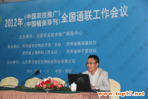 托普儀器陳渝陽總經(jīng)理應邀參加了此次會議。會議上,陳總經(jīng)理講到:作為《中國農(nóng)技推廣》2012年度副理事長單位代表,托普儀器一直在積極推進農(nóng)業(yè)技術(shù)基層推廣與宣傳。由托普儀器自產(chǎn)的土壤養(yǎng)分速測儀、土壤墑情速測儀、農(nóng)藥殘留速測儀、自動蟲情測報燈、孢子捕捉儀、殺蟲燈等廣泛應用于今年啟動的《基層農(nóng)技推廣服務(wù)體系建設(shè)項目》,同時托普儀器在此刊內(nèi)適時發(fā)表一些應用于農(nóng)技推廣建設(shè)的先進技術(shù)的文章,與同行、客戶共享。陳總經(jīng)理表示:托普儀器將利用高科技人才和先進技術(shù)進一步致力于植保產(chǎn)品以及農(nóng)業(yè)儀器的開發(fā)與推廣,為中國農(nóng)技推廣增添新的力量。