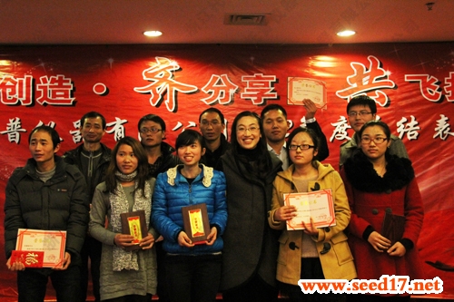 圖為:公司營銷總監陳麗婷與優秀員工合影