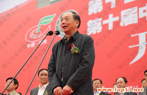 圖為:國務院參事、農業部原副部長劉堅宣布大會開幕