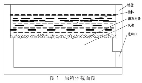 工作時,由于曲料對風的阻礙作用,氣流在箱體中形成靜壓。在曲料底層與頂層風壓差的作用下,形成穩(wěn)定的通過曲料的氣流供給新鮮空氣同時帶走多余熱量。