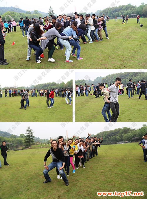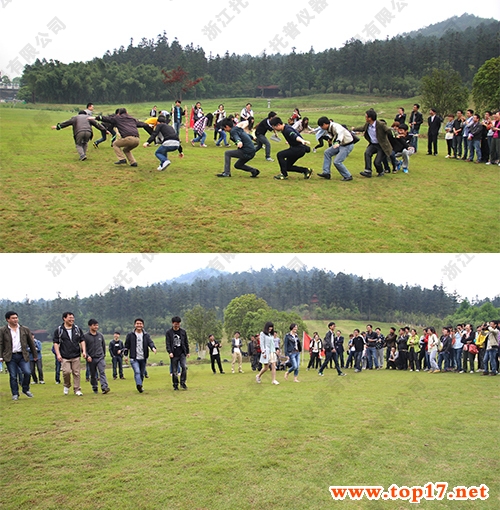 上午的拓展活動在園中翠綠色的大草坪上展開,托普儀器近300人的龐大隊伍被分成了10個小組進行團體比賽。兩場比賽分別為“快樂抱抱爆”和“穿越生死網”,雖然游戲的名字和比賽的方式不同,但同樣都是關于速度與時間的較量。