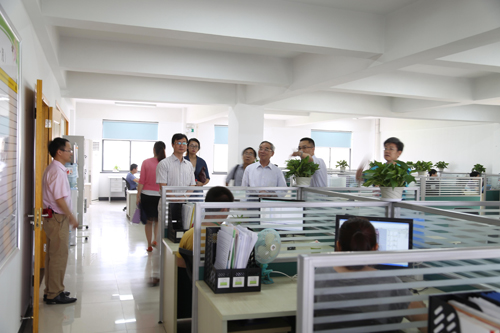 在一樓大廳的公司榮譽墻前,托普儀器陳渝陽總經理為陳耀邦部長一行領導簡單介紹了公司成立十年來所取得的不錯成績。隨后,調研組分別參觀了儀器設備展覽室、實驗室和研發中心,每一個考察點都是助力現代農業發展的科技成果,給予陳耀邦部長調研組全體成員足夠的吸引力與震撼。