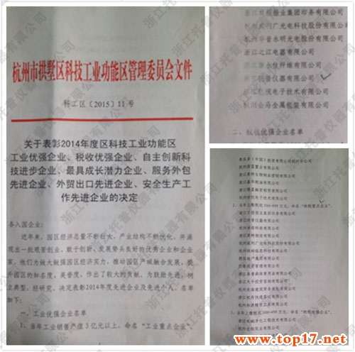 托普儀器被評定為拱墅區(qū)“工業(yè)先進企業(yè)”、“納稅重點企業(yè)”