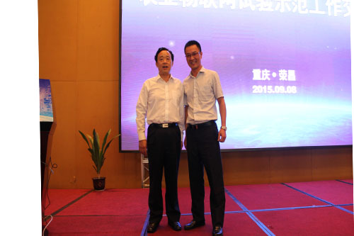 圖為:農(nóng)業(yè)部科教司司長(zhǎng)唐珂(左一)與陳渝陽總經(jīng)理(左二)合影