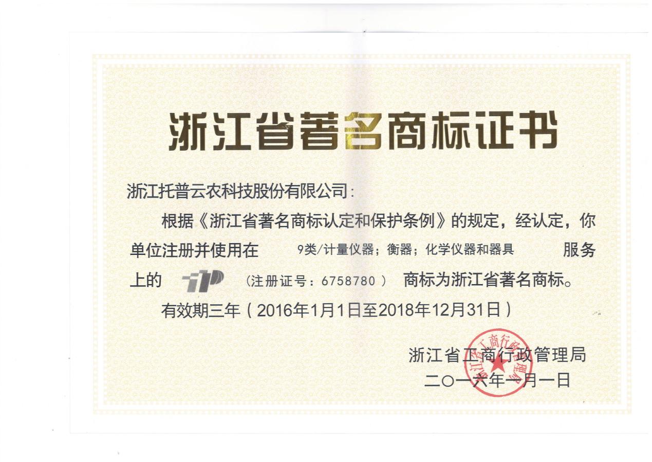 您現(xiàn)在的位置:中國(guó)農(nóng)業(yè)儀器網(wǎng) > 托普風(fēng)采 >托普商標(biāo)榮獲浙江省著名商標(biāo)