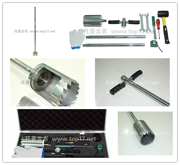鋁箱、鉆頭體、連接桿、擊打手柄、擊打錘、固定扳手、卷尺、刮土刀、十字螺絲刀、手套