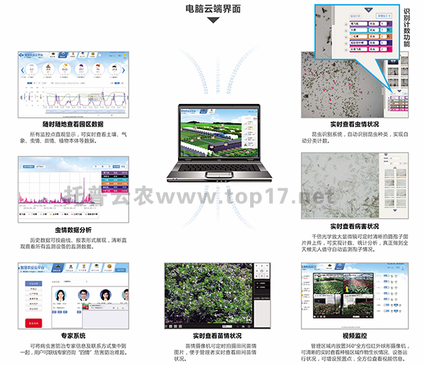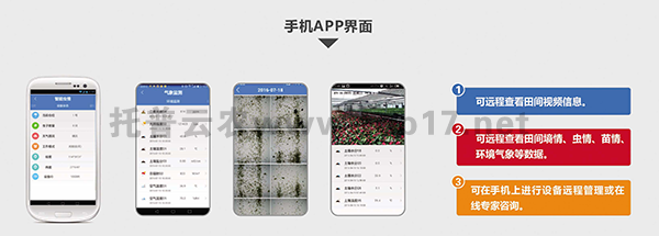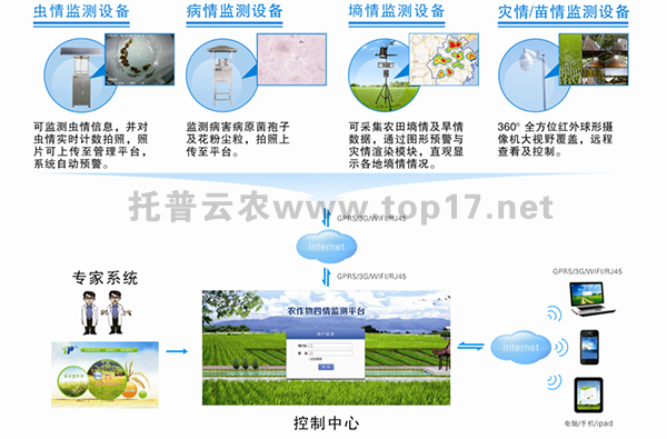 系統(tǒng)集成病蟲(chóng)害及環(huán)境監(jiān)測(cè)設(shè)備,可在WEB端或手機(jī)APP端遠(yuǎn)程實(shí)時(shí)在線查看監(jiān)測(cè)區(qū)域環(huán)境、蟲(chóng)情、病害信息,并提供專家指導(dǎo)。