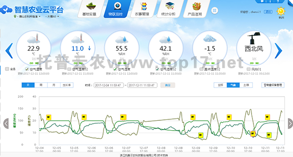 4.氣象數(shù)據(jù)監(jiān)測(cè)分析:采集區(qū)域土壤墑情及空氣溫濕度、二氧化碳、光照強(qiáng)度等參數(shù),形成圖形報(bào)表及數(shù)據(jù)曲線,以供專業(yè)人員進(jìn)行數(shù)據(jù)分析對(duì)比。